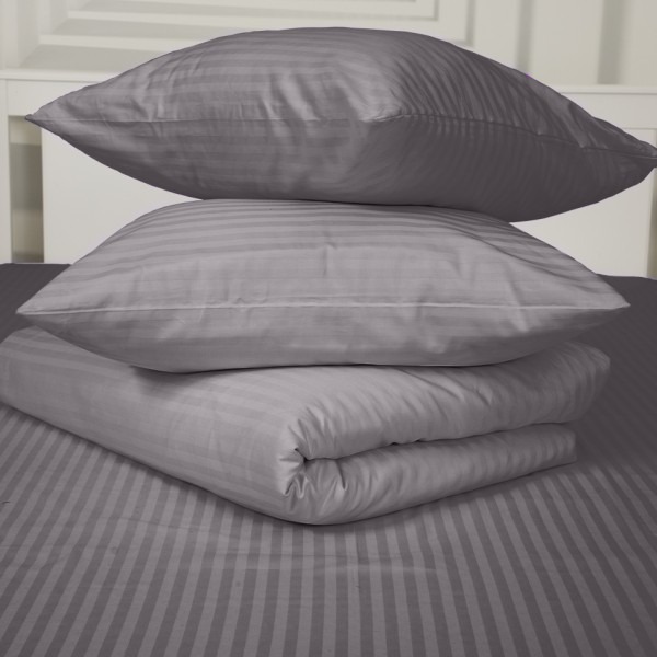 Постельное белье страйп-сатин на молнии / Пыльно-серый
