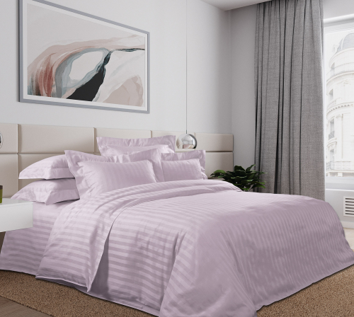 Комплект выполнен из пакистанского хлопка высшего качества, ткани страйп-сатин, прочной, износоустойчивой и очень красивой. Мягкость и блеск ее часто сравнивают с шелком. На поверхности можно рассмотреть чередующиеся глянцевые и матовые полоски, образованные благодаря особому способу переплетения нитей. Ширина контрастной полоски 2 см.