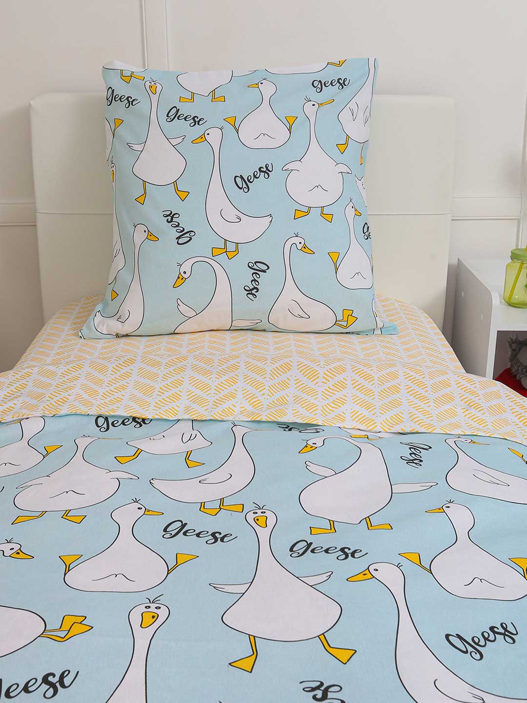 КПБ Поплин 1.5 сп с 1 нав. 70*70 с детским рисунком - Гусь-обнимусь (мята)