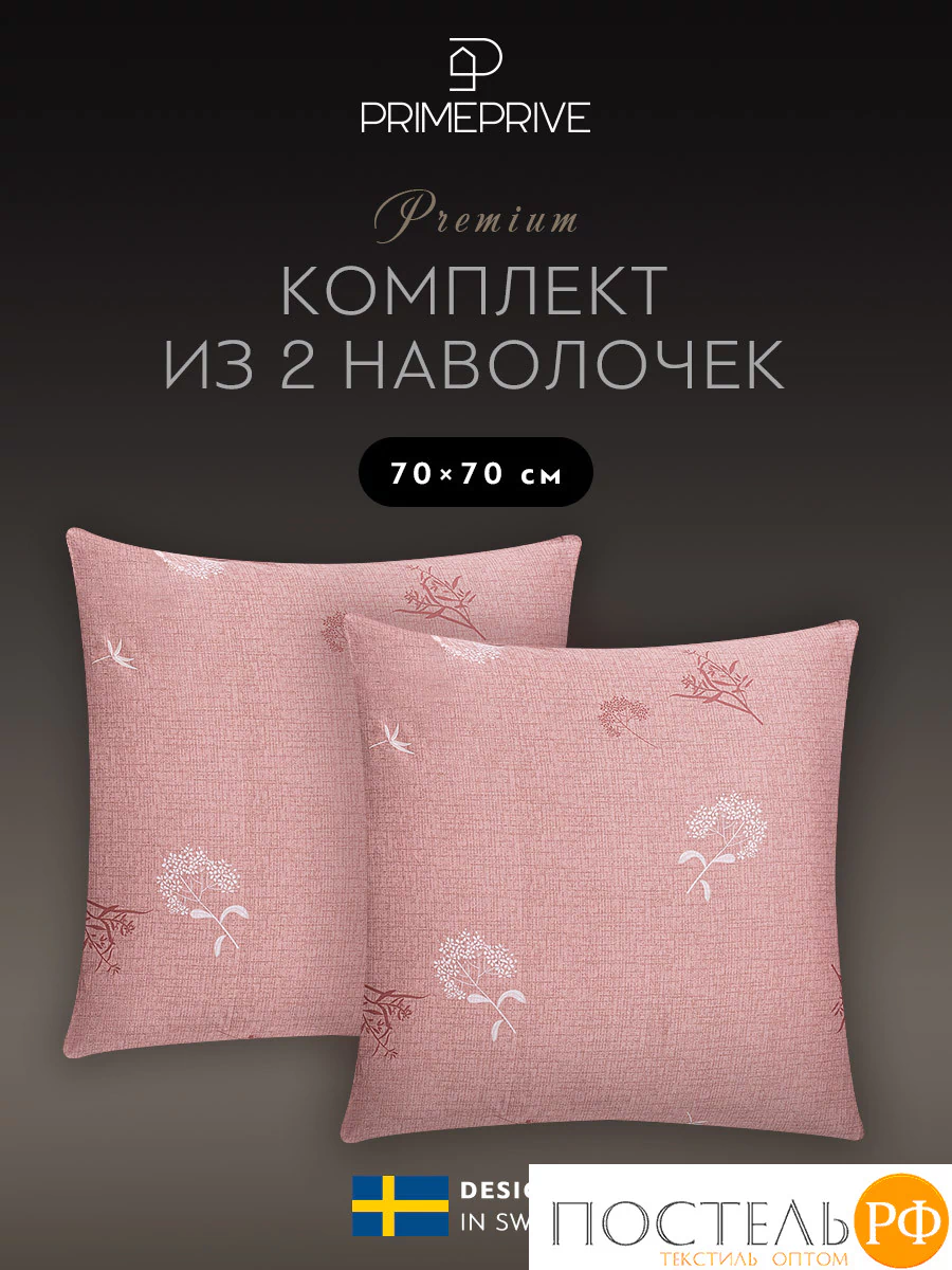 Комплект наволочек бренда PRIME PRIVE коллекции «ЛЕРУМ» размером 70х70см - 2 шт изготовлен из 100% хлопка в плетении сатин высокого качества, плотностью 110 г/м2.