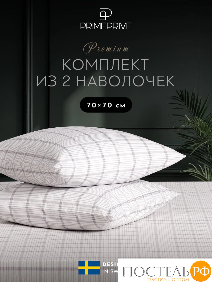 Комплект наволочек бренда PRIME PRIVE коллекции «ТОРГЕР» размером 70х70см - 2 шт изготовлен из 100% хлопка в плетении сатин высокого качества, плотностью 110 г/м2.