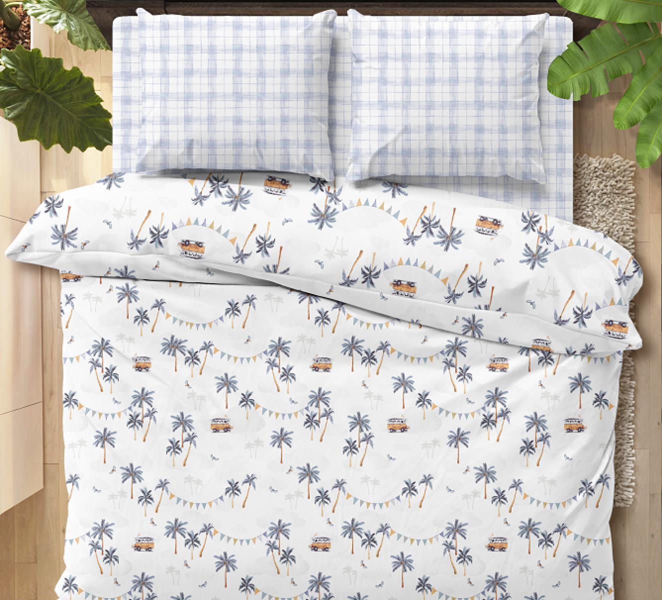 Простыня Хиппи сшита из ткани-компаньона (как простыня и наволочки на фото).