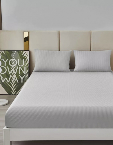 Простыня на резинке Мерцана Страйп-сатин с наволочками 50х70 см MERCSSN02 (Светло-серый)