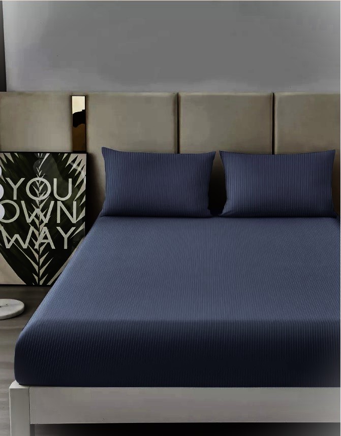 Простыня на резинке Мерцана Страйп-сатин с наволочками 50х70 см MERCSSN07 (Синий)