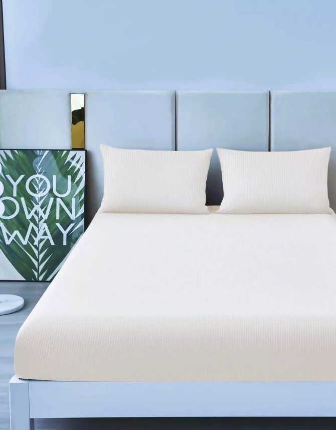 Простыня на резинке Мерцана Страйп-сатин с наволочками 50х70 см MERCSSN11 (Кремовый)