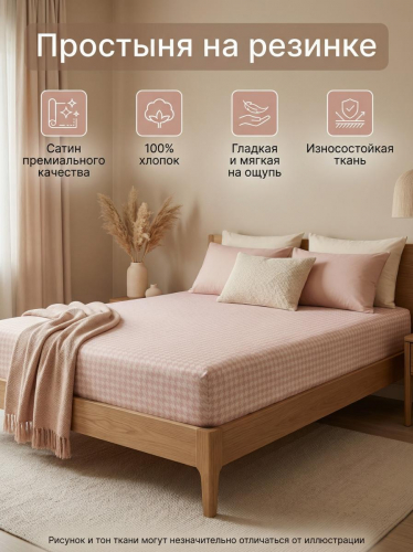 Простыня на резинке Розовый твид сатин