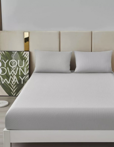 Простыня Страйп Жаккард на резинке Мерцана MERCJ005 (Сетло-серый)