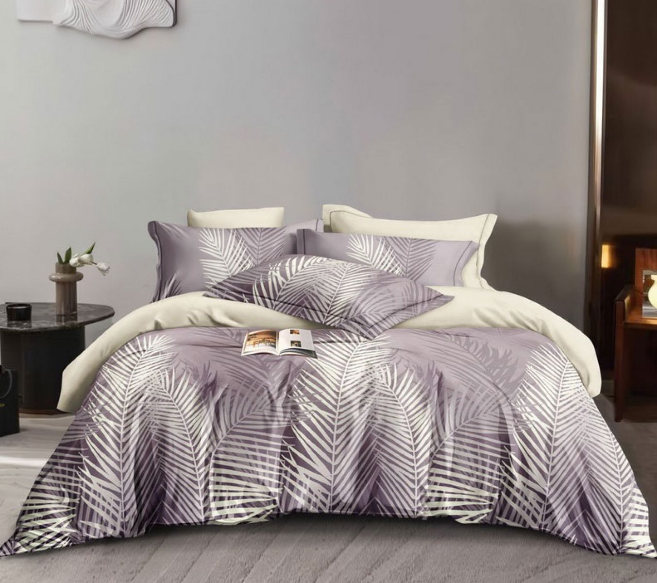 Стильный растительный принт из пальмовых листьев делает простыню идеальным выбором для создания уютной атмосферы в спальне.