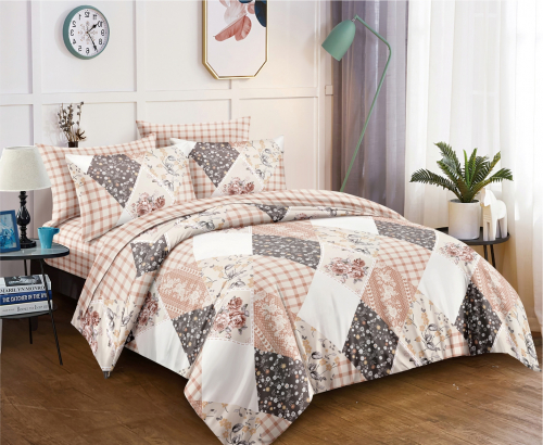Поплин плотностью 110-115 г/кв.м, 100% хлопок Комплект выполнен "без оборок", наволочки с клапаном "без ушек". Пододеяльник с разрезом по нижнему краю