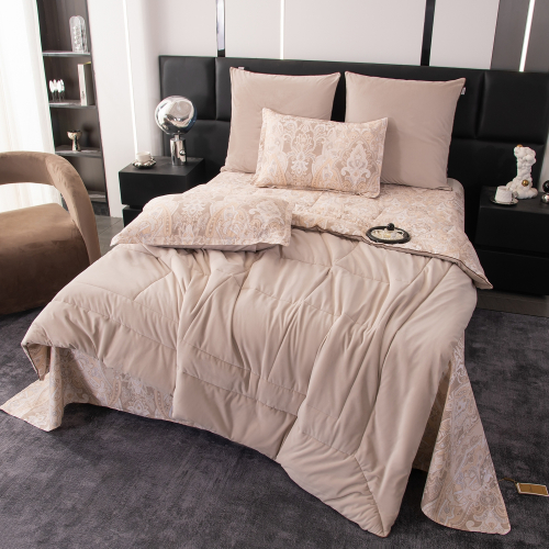 Одеяло выполнено с изысканной геометрической стёжкой и оформлено бархатным кантом. Верхняя сторона: мягкий велюр, придающий комплекту благородный вид и особую уютность, нижняя сторона: сатин из 100% хлопка, обеспечивающий естественную воздухопроницаемость и комфорт во время сна. Наполнитель: современное 100% эковолокно микрогель, лёгкое, гипоаллергенное и сохраняющее форму даже после многократных стирок. Зимой под таким одеялом тепло и уютно, а летом благодаря отличной циркуляции воздуха не будет жарко.