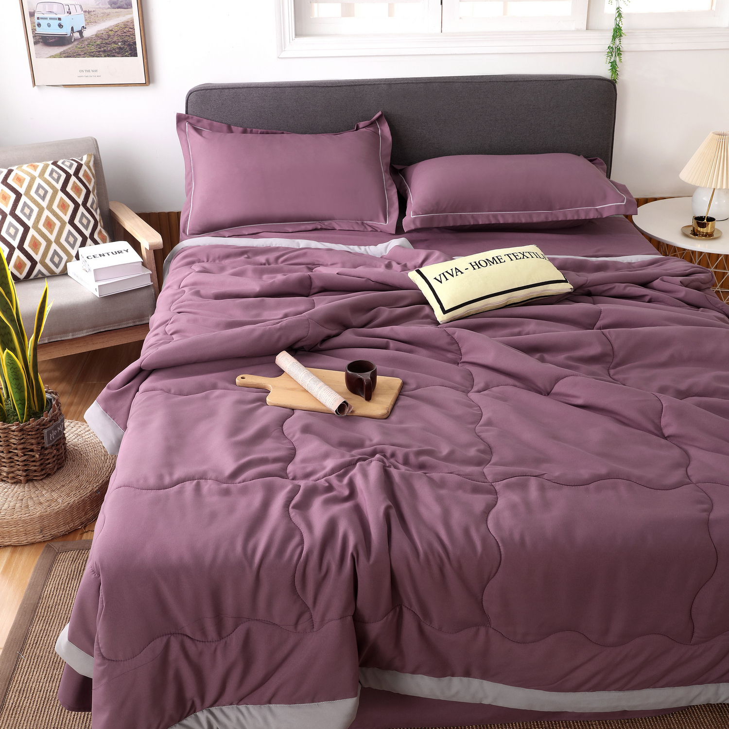 Одеяло-покрывало и наволочки: Украшены широким кантом по периметру