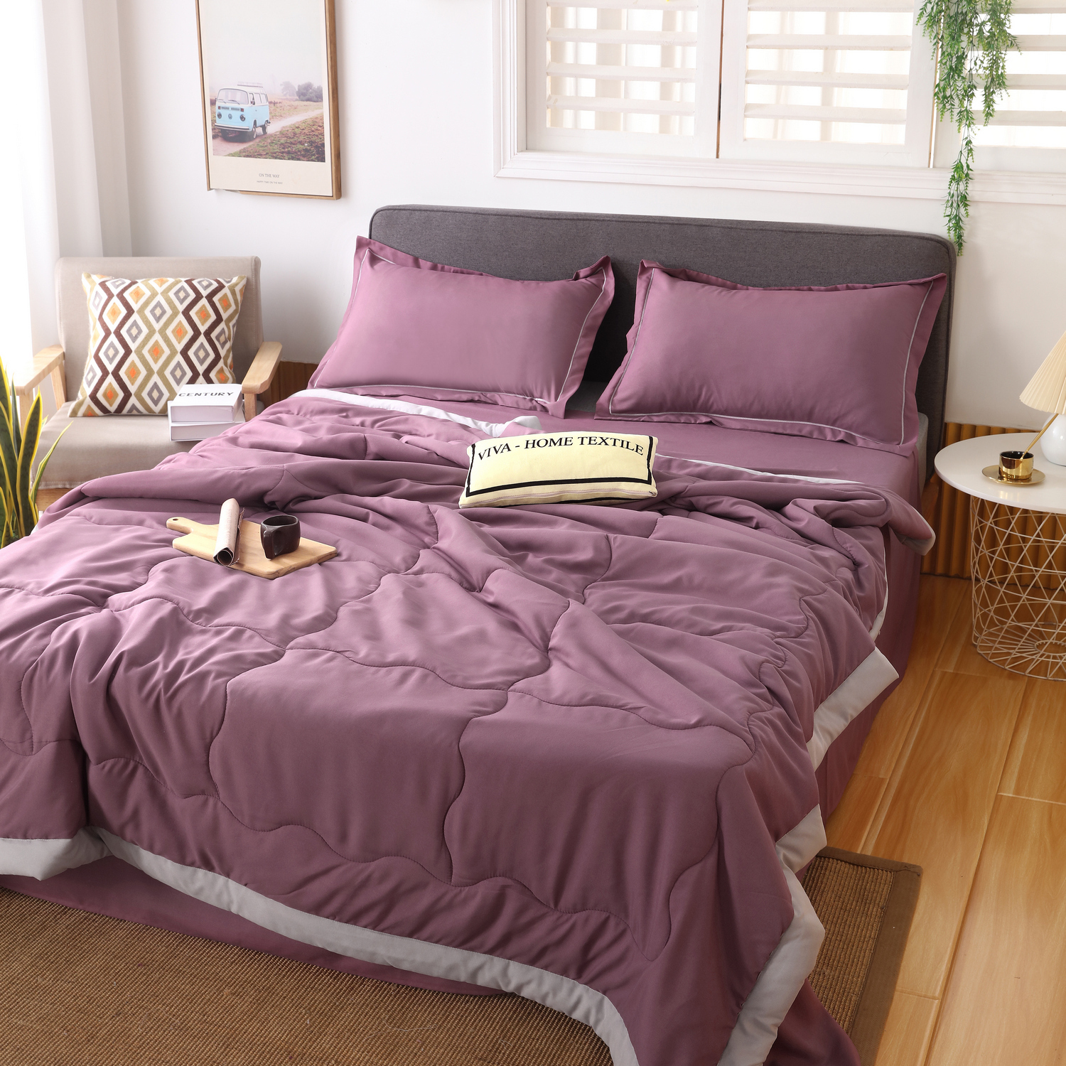 Вам больше не придётся уделять много времени на то, чтобы заправить постель. На смену классическому пододеяльнику пришло комфортное одеяло, также выполняющее функцию покрывала и соответствующее дизайну комплекта.