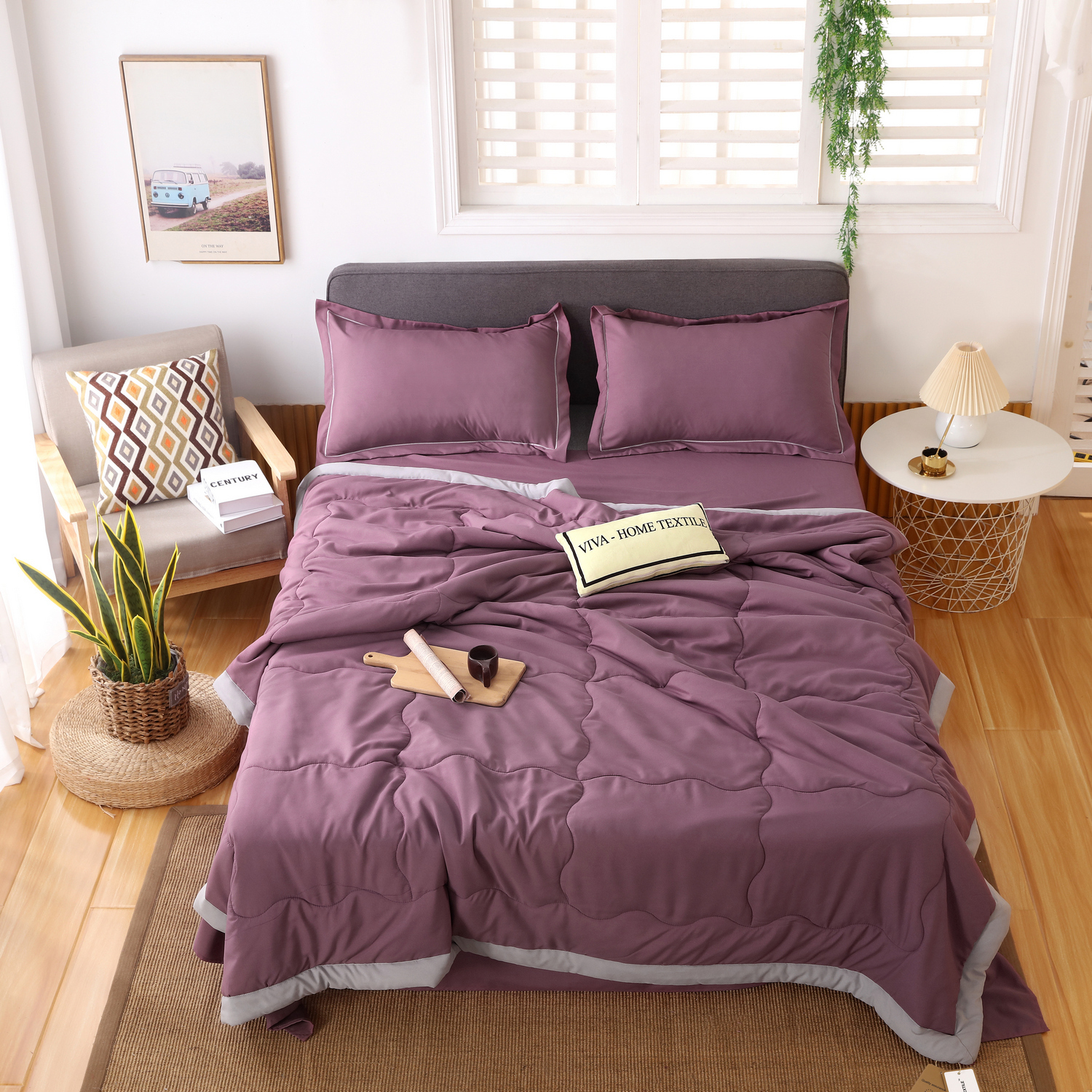 Стеганое одеяло-покрывало из бамбукового волокна прекрасно подходит для людей с чувствительной кожей. Антибактериальные свойства бамбукового волокна не снижаются даже после нескольких десятков стирок. Зимой под таким одеялом тепло и уютно, а летом, благодаря отличной воздухопроницаемости, совсем не жарко. Бамбуковые волокна прекрасно впитывают влагу и быстро сохнут благодаря пористой структуре.