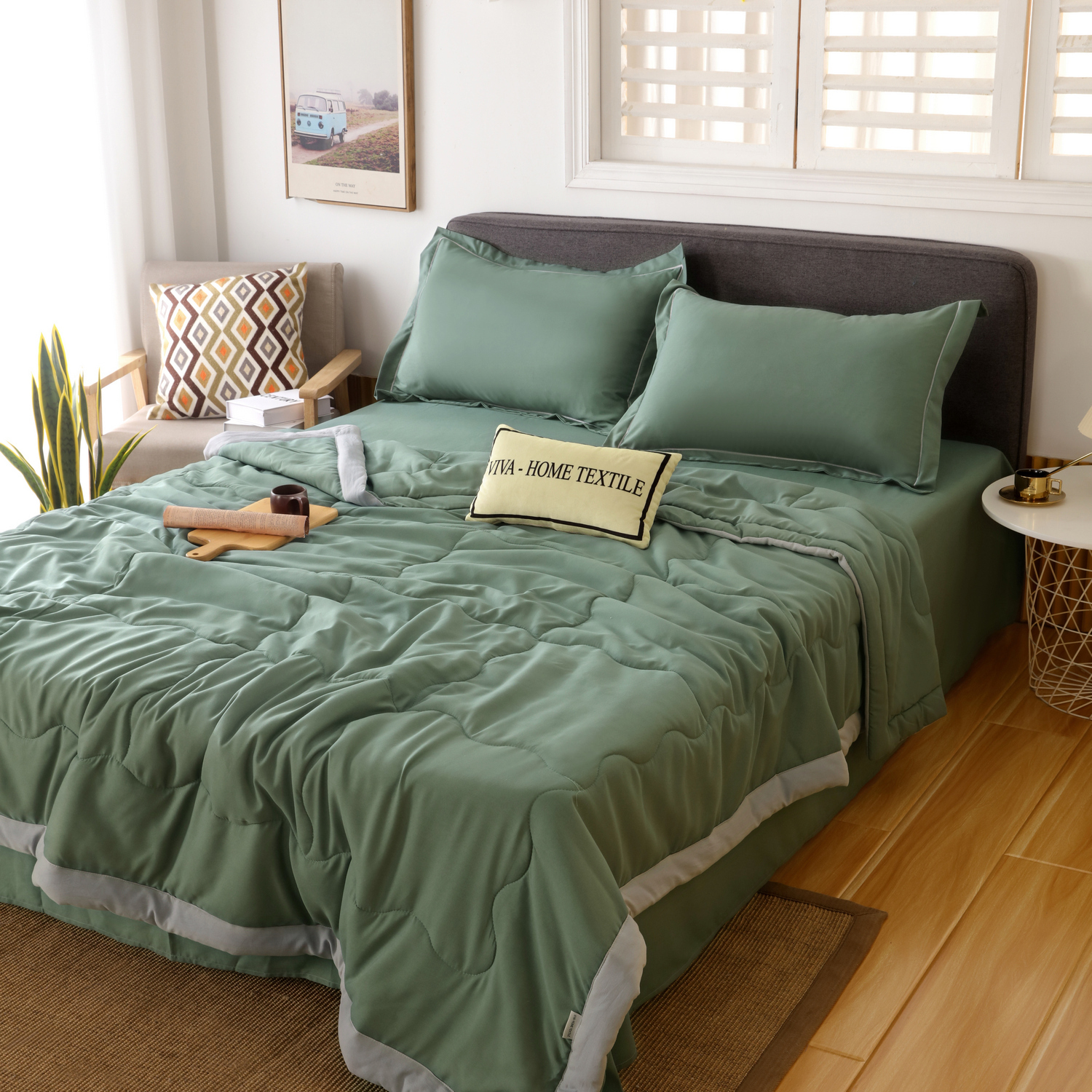 Вам больше не придётся уделять много времени на то, чтобы заправить постель. На смену классическому пододеяльнику пришло комфортное одеяло, также выполняющее функцию покрывала и соответствующее дизайну комплекта.