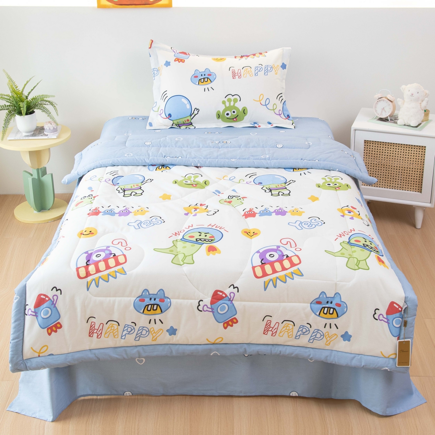 Наволочка с запАхом и с кантом по периметру. Одеяло-покрывало стеганое с нетканным материалом для удержания наполнителя.