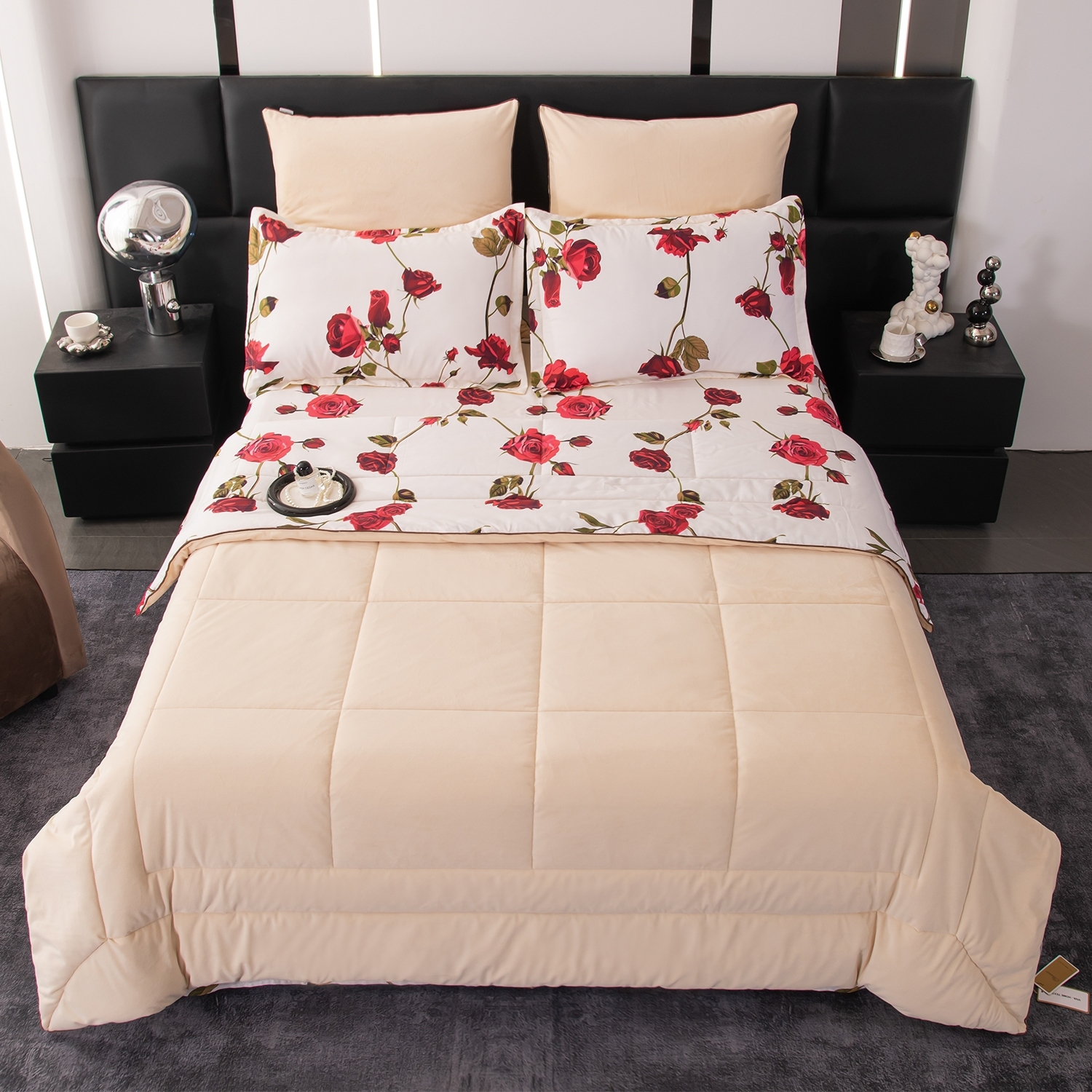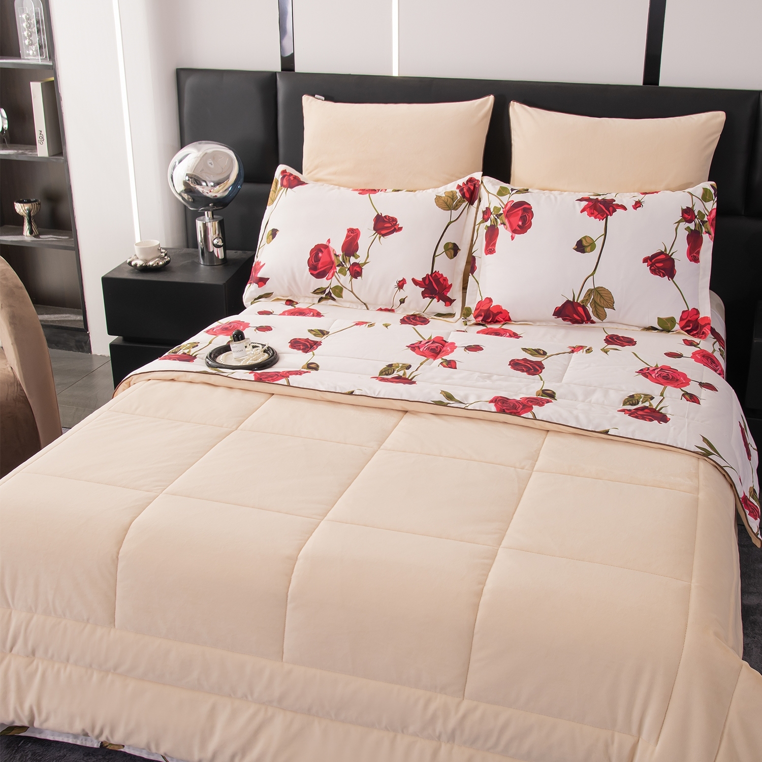 Одеяло выполнено с изысканной геометрической стёжкой и оформлено бархатным кантом. Верхняя сторона: мягкий велюр, придающий комплекту благородный вид и особую уютность, нижняя сторона: сатин из 100% хлопка, обеспечивающий естественную воздухопроницаемость и комфорт во время сна. Наполнитель: современное 100% эковолокно микрогель, лёгкое, гипоаллергенное и сохраняющее форму даже после многократных стирок. Зимой под таким одеялом тепло и уютно, а летом благодаря отличной циркуляции воздуха не будет жарко.