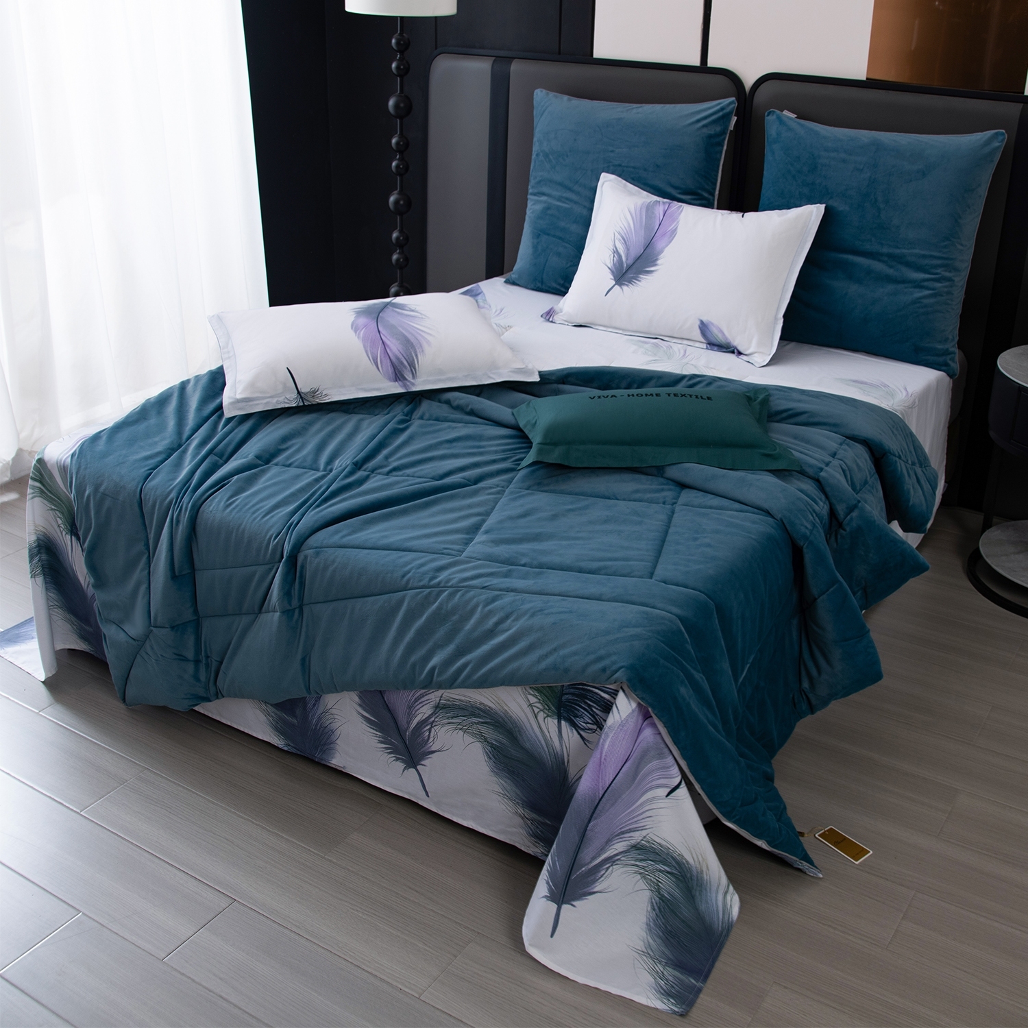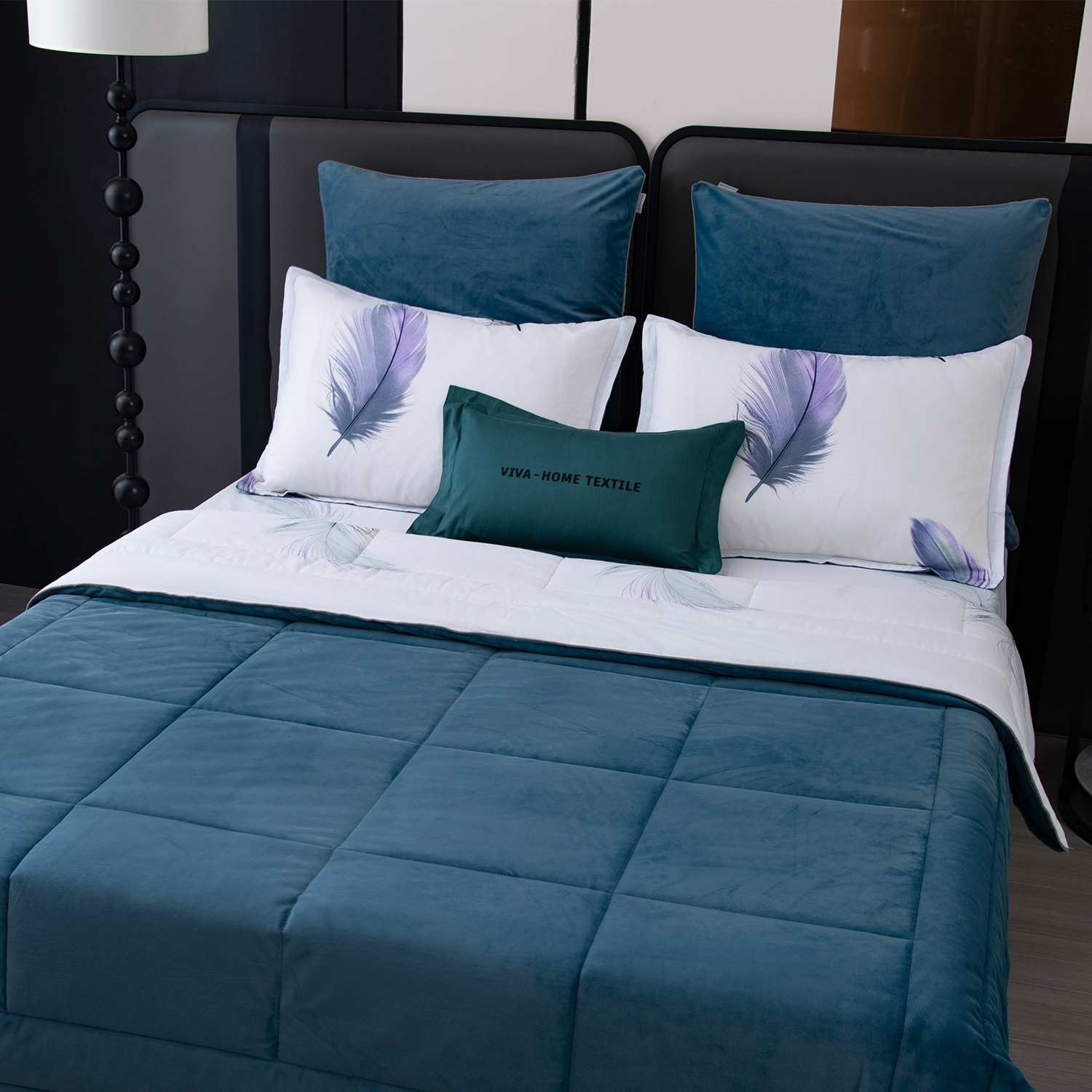 Одеяло выполнено с изысканной геометрической стёжкой и оформлено бархатным кантом. Верхняя сторона: мягкий велюр, придающий комплекту благородный вид и особую уютность, нижняя сторона: сатин из 100% хлопка, обеспечивающий естественную воздухопроницаемость и комфорт во время сна. Наполнитель: современное 100% эковолокно микрогель, лёгкое, гипоаллергенное и сохраняющее форму даже после многократных стирок. Зимой под таким одеялом тепло и уютно, а летом благодаря отличной циркуляции воздуха не будет жарко.