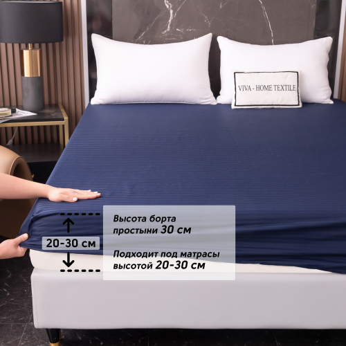Простынь на резинке Страйп Сатин Однотонный 100% хлопок RR1CT032 180*200*30