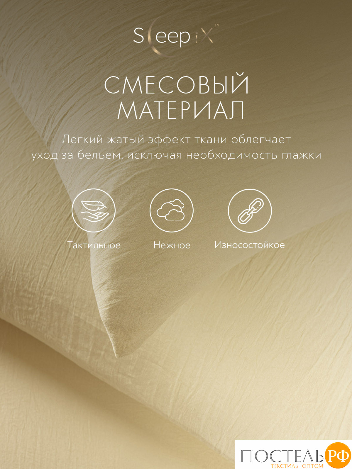 Легкий жатый эффект ткани облегчает уход за постельным бельем и практически исключает необходимость глажки после стирки.