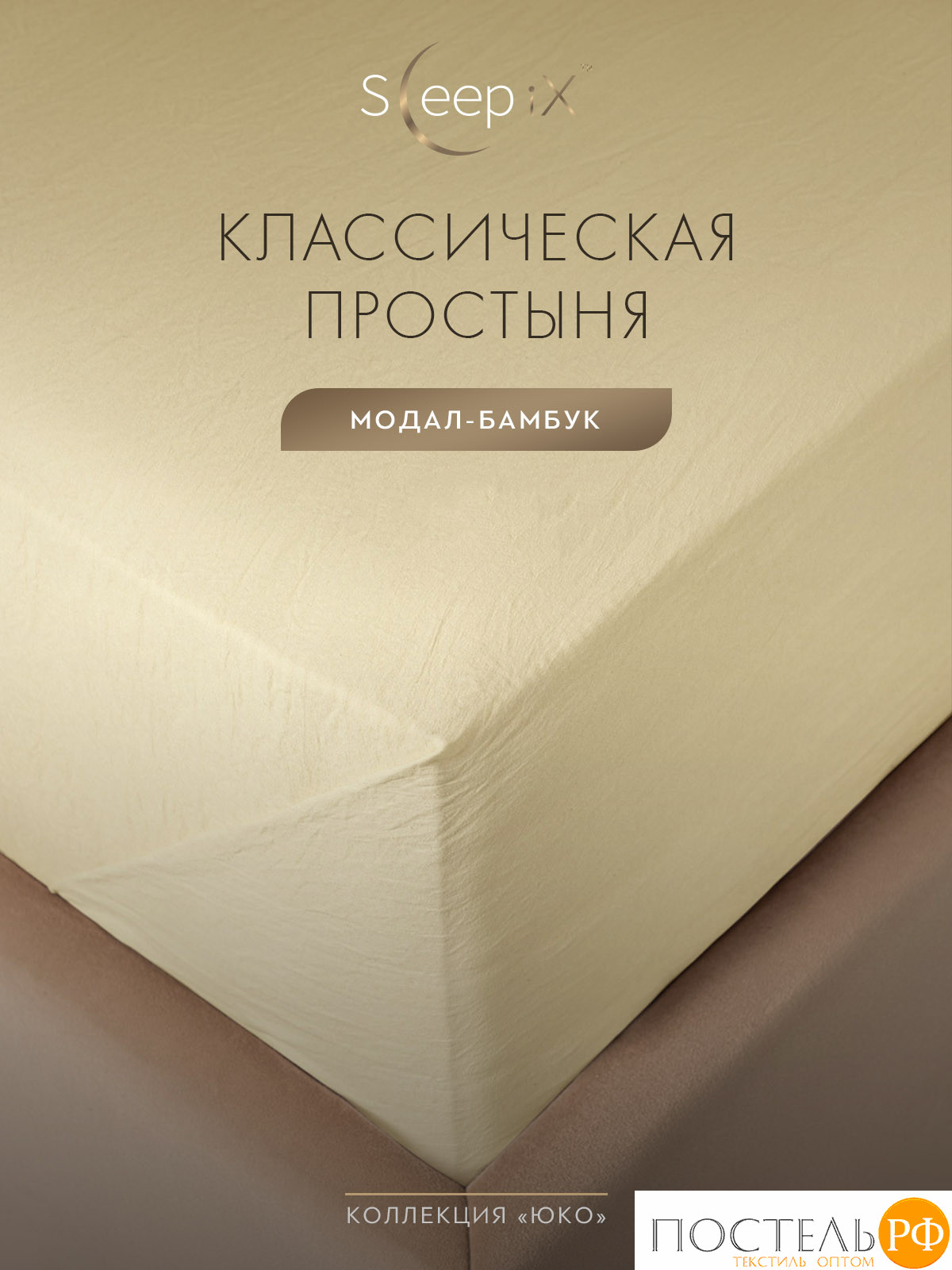 Простыня свободная бренда SleepiX коллекции «ЮКО» размером 180х220 см. изготовлена из ткани улучшенного состава 60% модал 40% бамбук в плетении сатин высокого качества, плотностью 110 г/м2 в России.