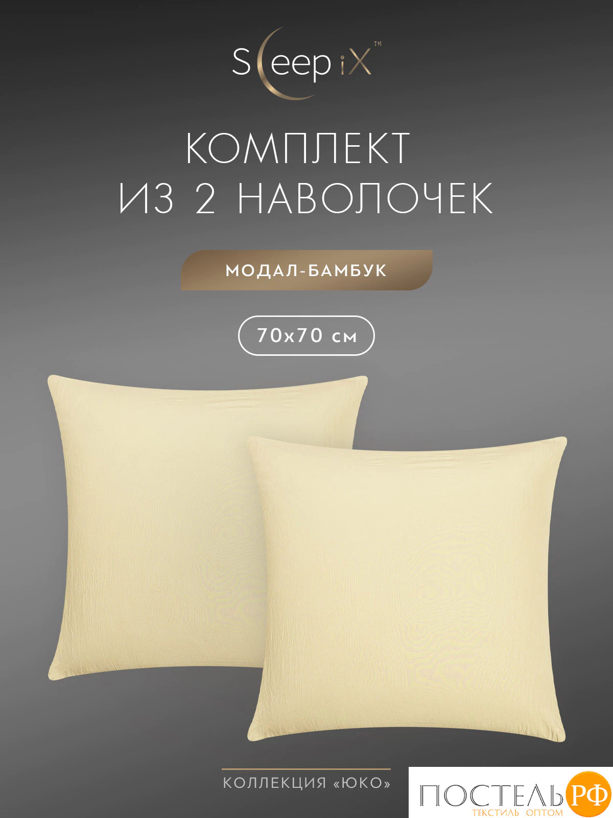 Комплект наволочек бренда SleepiX коллекции «ЮКО» размером 70х70 - 2 шт. изготовлен из ткани улучшенного состава 60% модал 40% бамбук в плетении сатин высокого качества, плотностью 110 г/м2 в России.