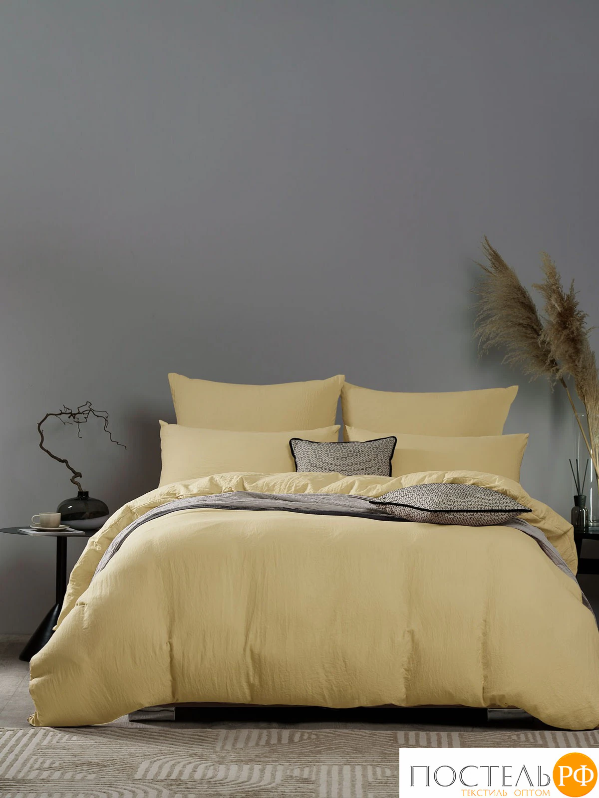 Легкий жатый эффект ткани облегчает уход за постельным бельем и практически исключает необходимость глажки после стирки.