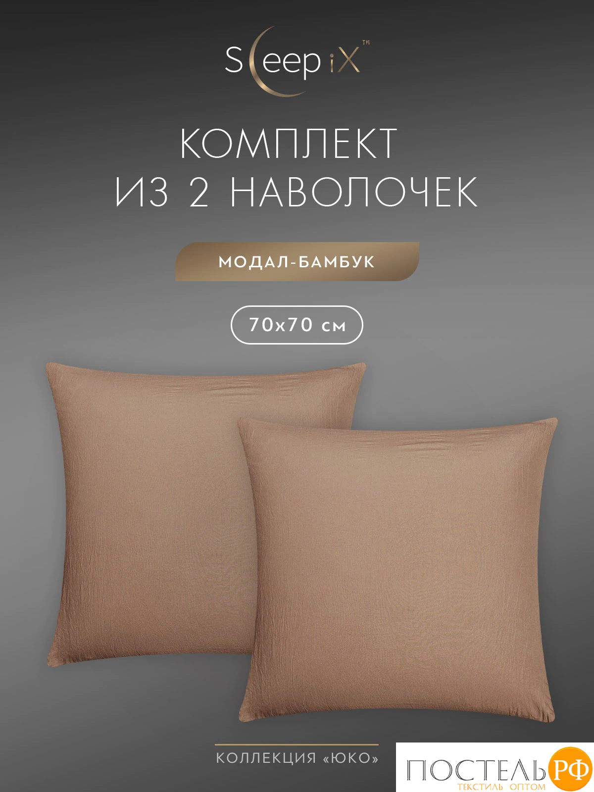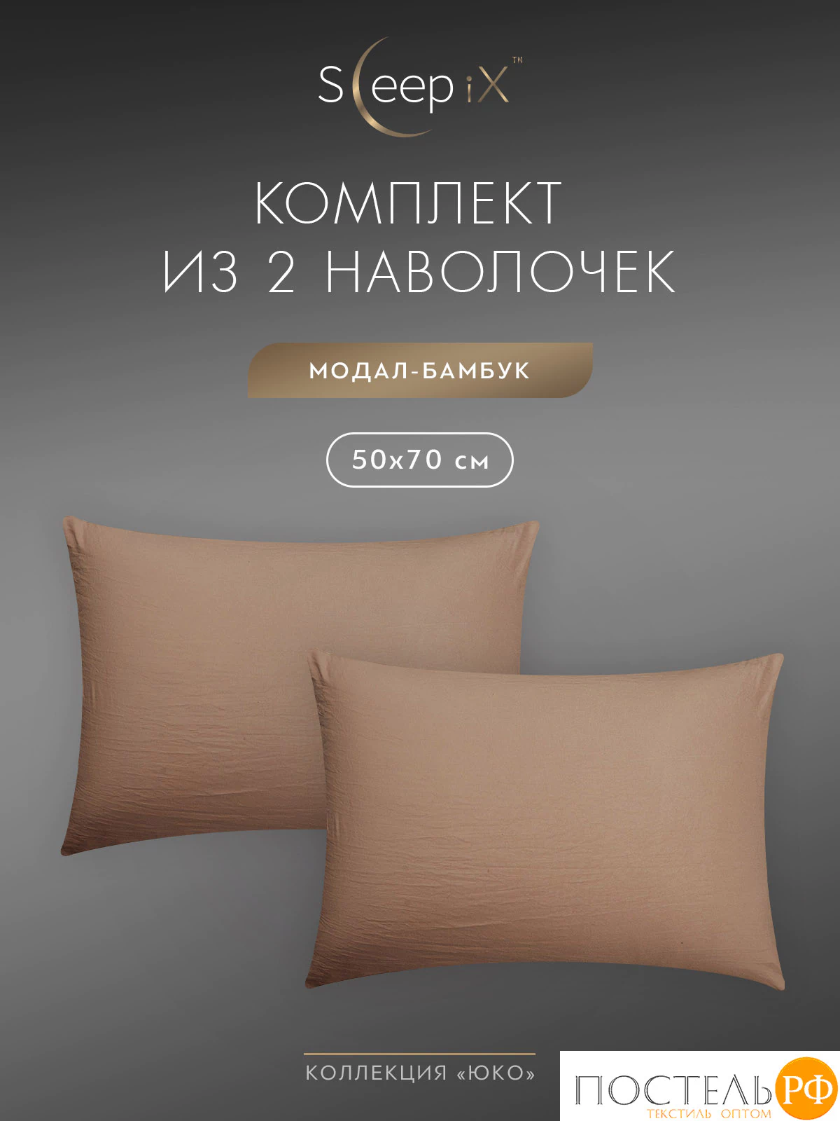 Комплект наволочек бренда SleepiX коллекции «ЮКО» размером 50х70 - 2 шт. изготовлен из ткани улучшенного состава 60% модал 40% бамбук в плетении сатин высокого качества, плотностью 110 г/м2 в России.