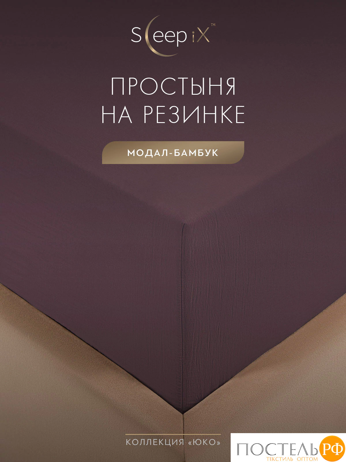 Простыня натяжная бренда SleepiX коллекции «ЮКО» размером 160х200+25 см. изготовлена из ткани улучшенного состава 60% модал 40% бамбук в плетении сатин высокого качества, плотностью 110 г/м2 в России.