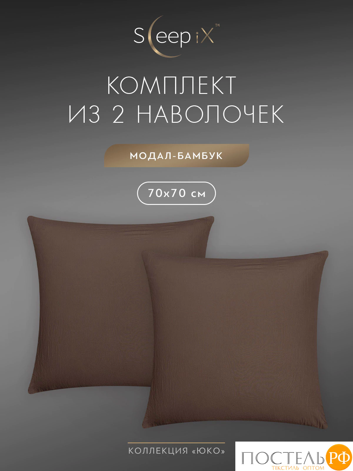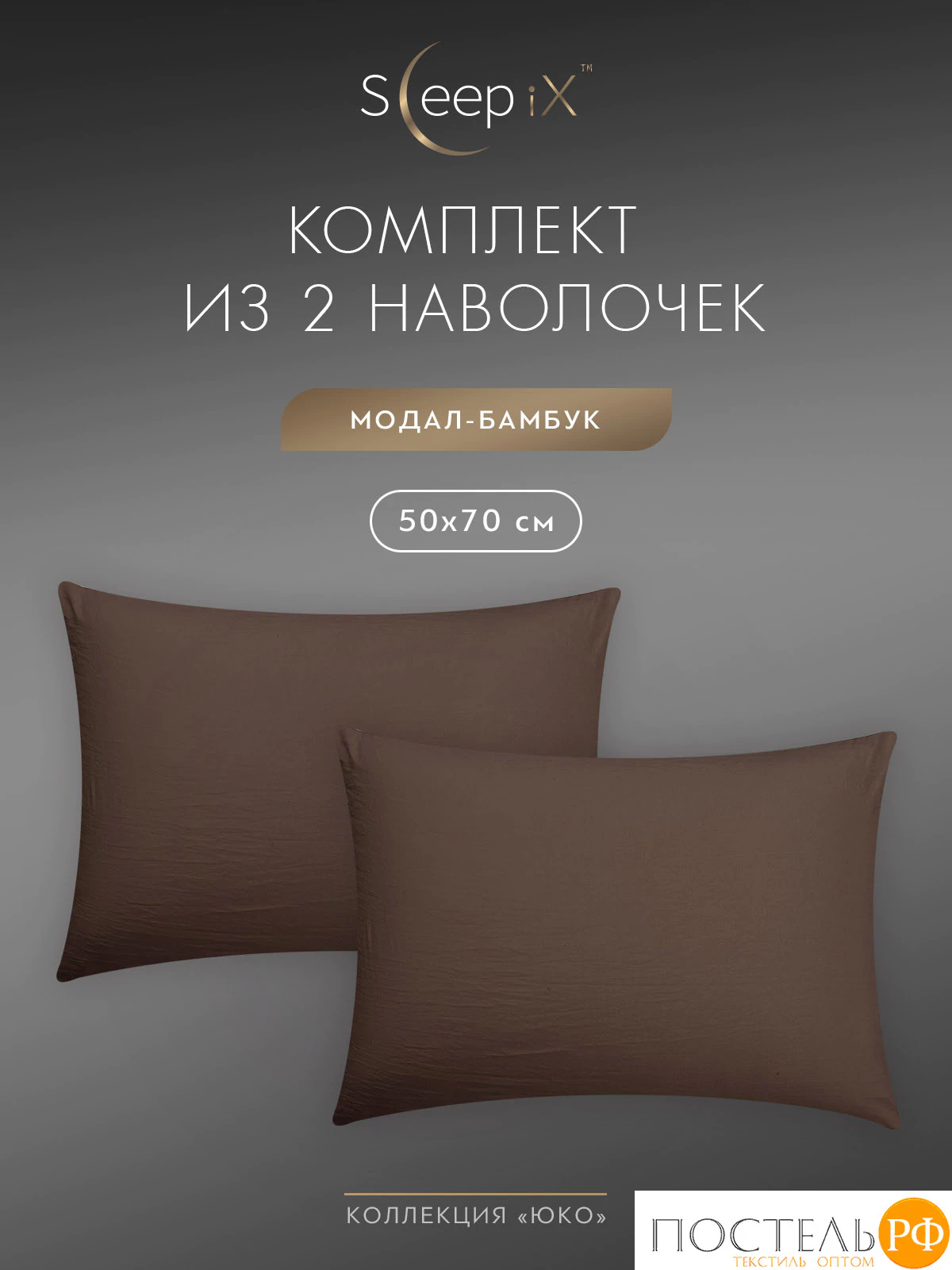 Комплект наволочек бренда SleepiX коллекции «ЮКО» размером 50х70 - 2 шт. изготовлен из ткани улучшенного состава 60% модал 40% бамбук в плетении сатин высокого качества, плотностью 110 г/м2 в России.