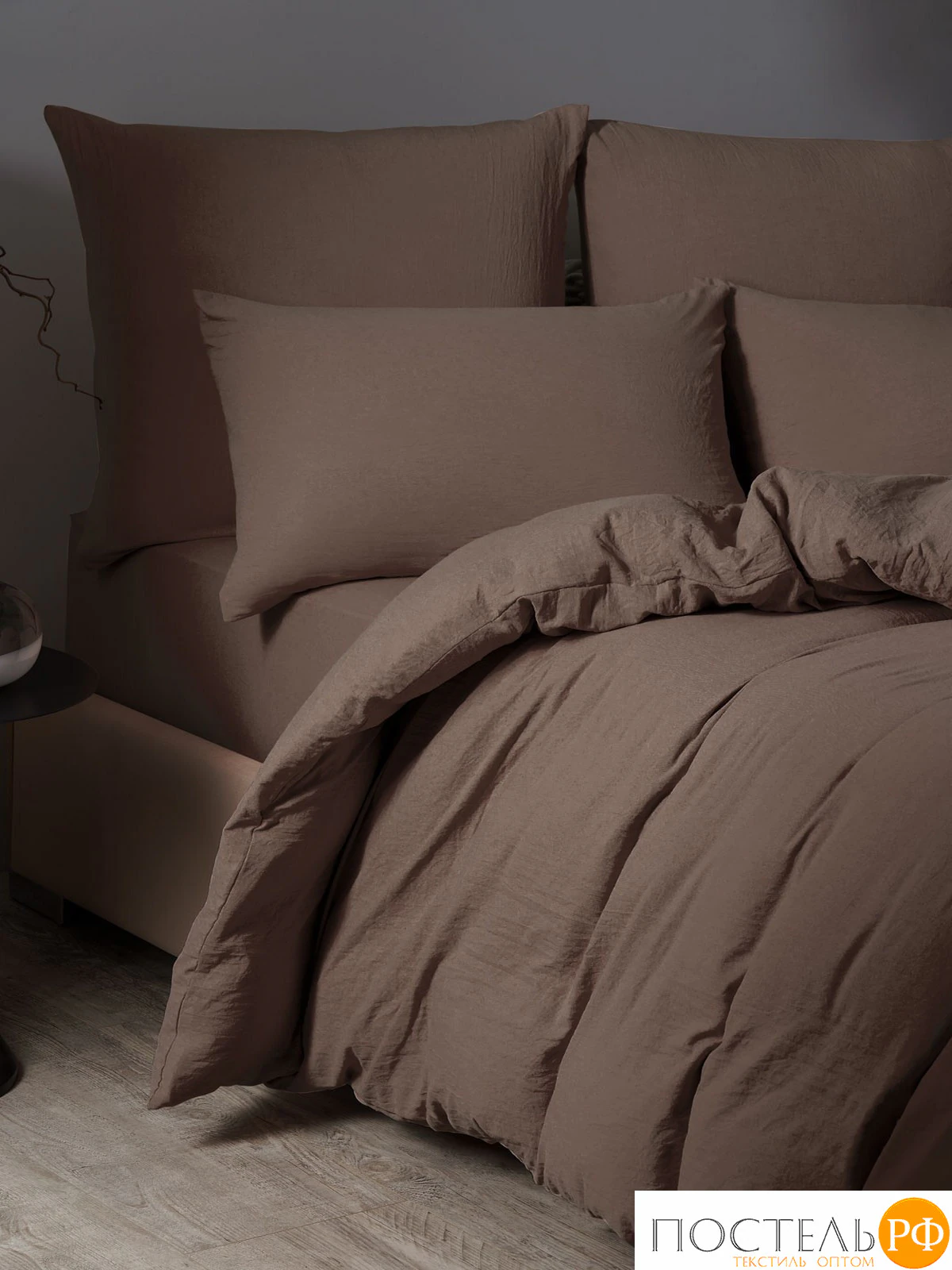 Смесовый материал с "браш" обработкой из разного вида целлюлозы делает постельное белье более тактильным, нежным и износоустойчивым.