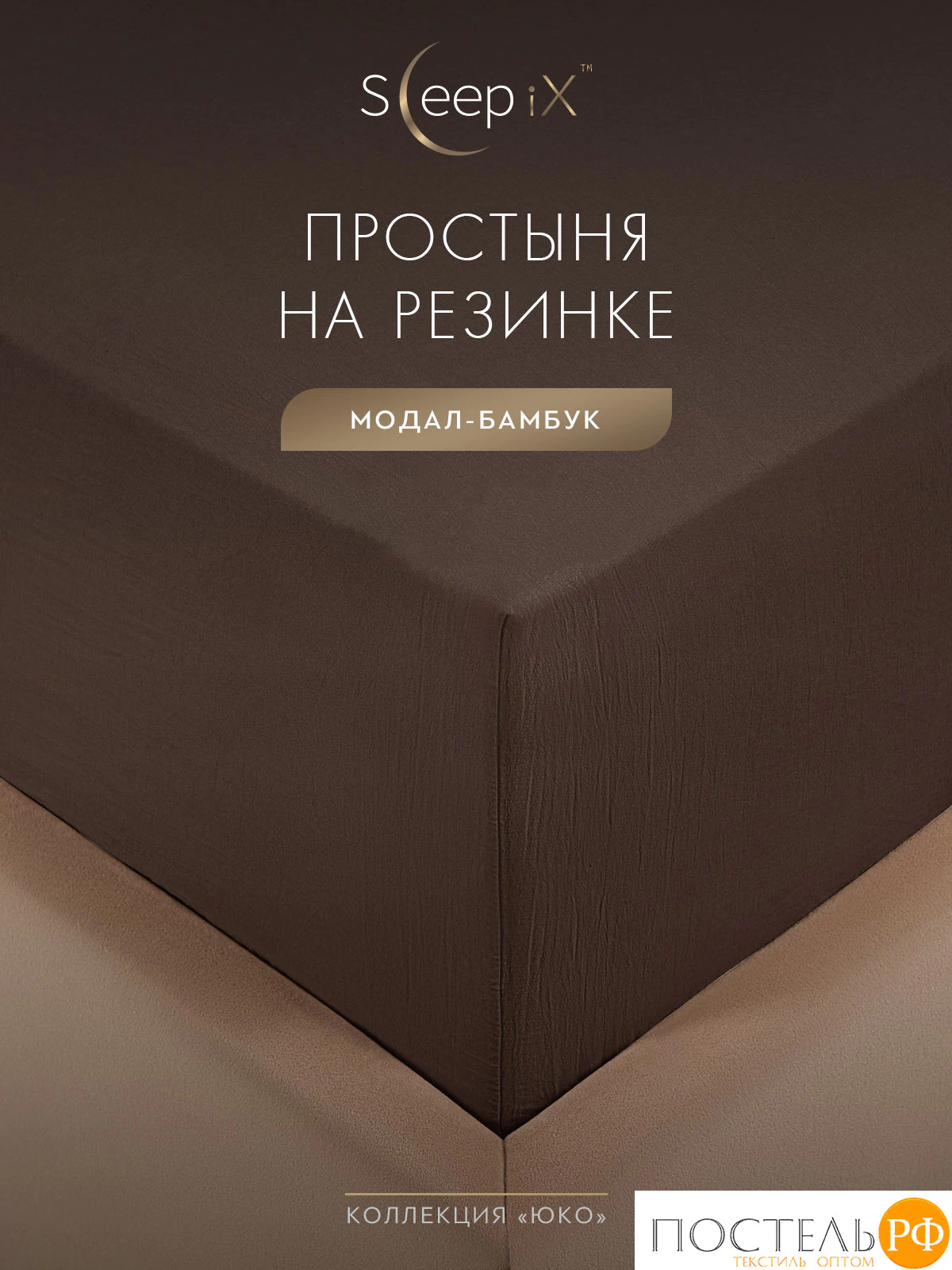 Простыня натяжная бренда SleepiX коллекции «ЮКО» размером 140х200+25 см. изготовлена из ткани улучшенного состава 60% модал 40% бамбук в плетении сатин высокого качества, плотностью 110 г/м2 в России.