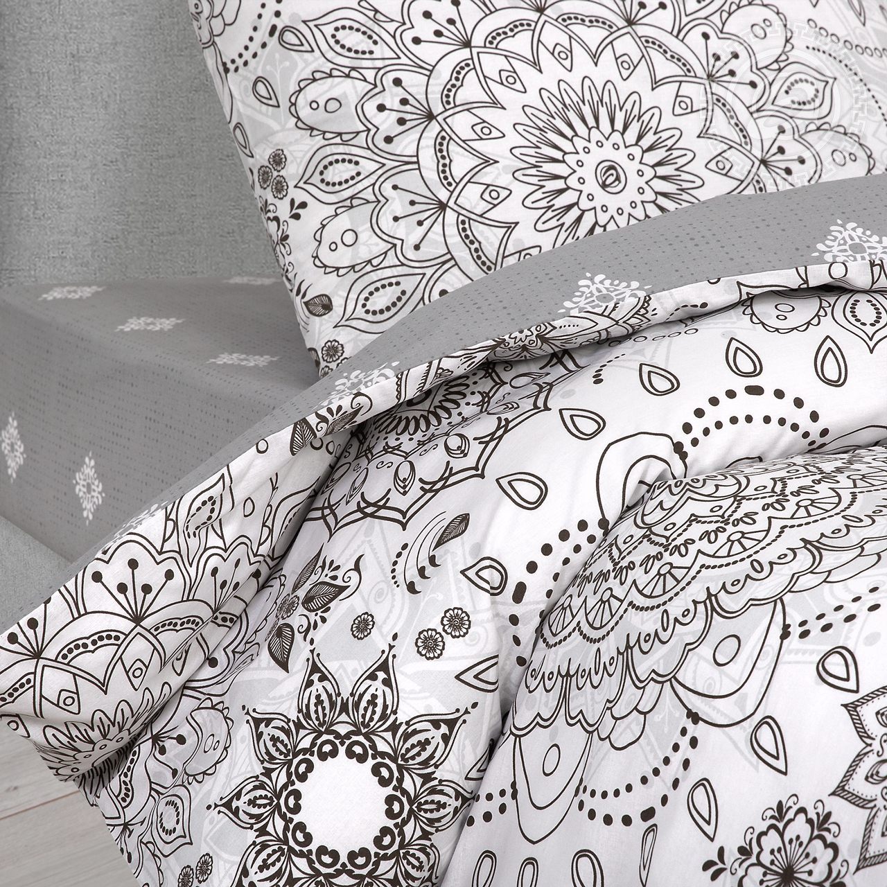 «Сорренто» – это воплощение изящества и элегантности. Это современная классика в новом прочтении. Постельное белье из поплина украшено необычным и очень интересным узором с цветочными и геометрическими деталями. Эксклюзивный орнамент напоминает и старинную мозаику, и модные картины.