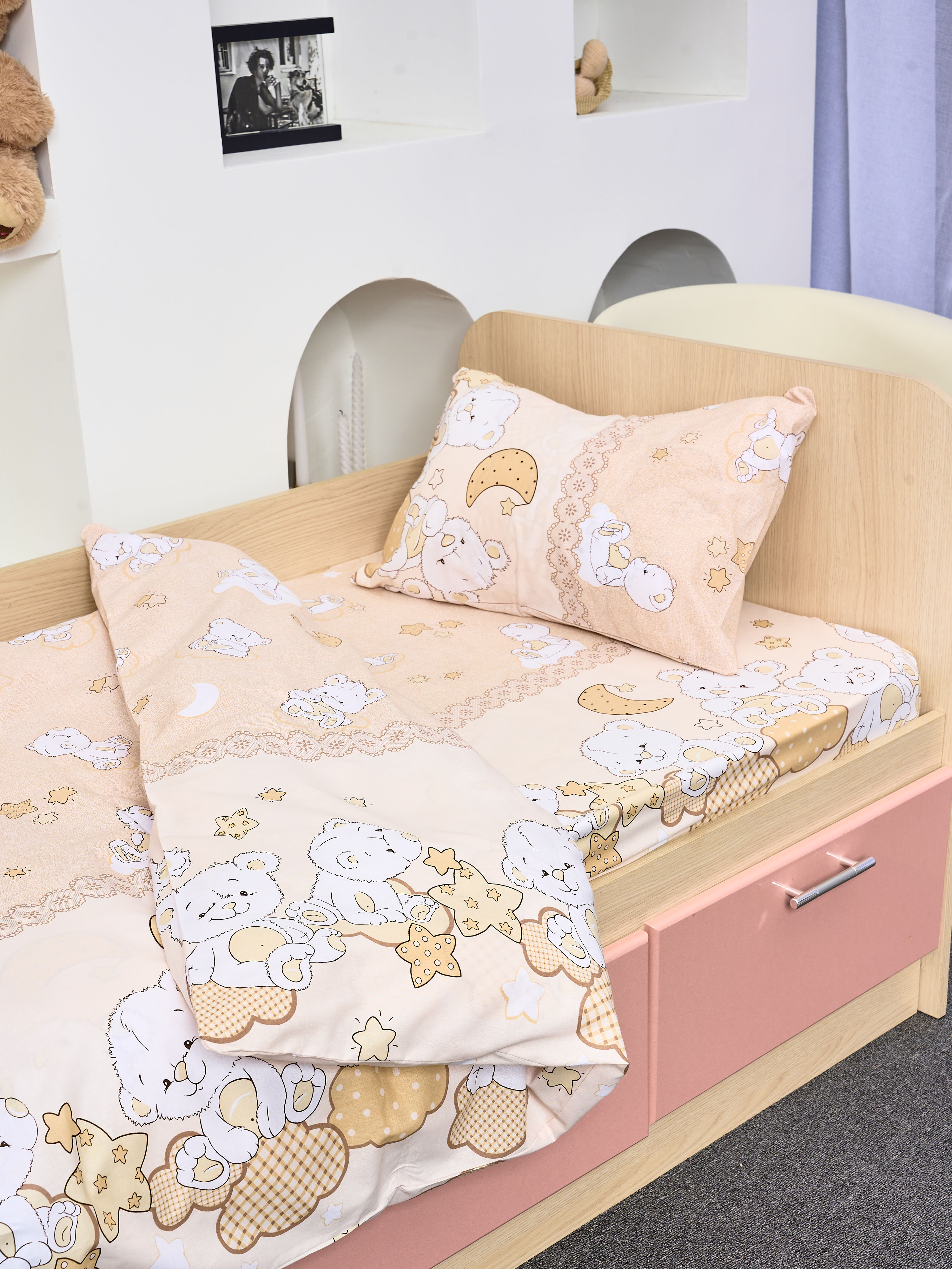 Постельное белье детское поплин с простыней на резинке - Медвежата