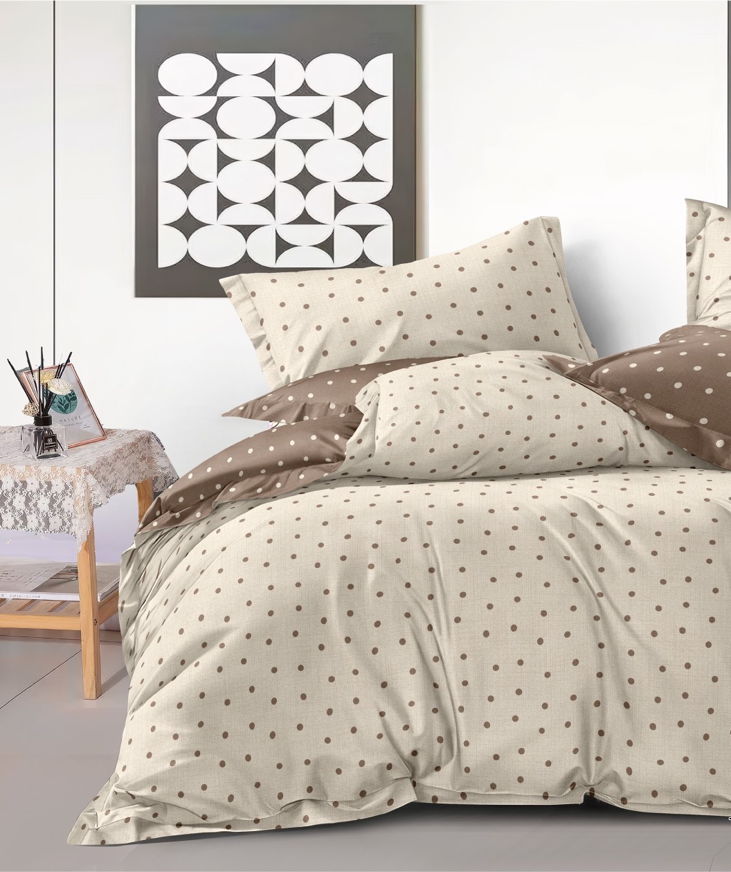 Комплекты постельного белья из поплина отшиваются с наволочками в количестве 2 штук. с застежкой - клапан на наволочках и прорезью на пододеяльнике. Упаковываются в прозрачный пакет ПВХ и комплектуются картонным вкладышем с ярким печатным изображением.