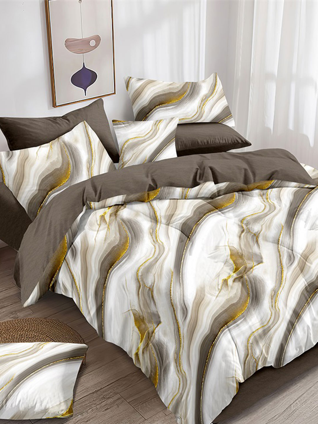 Комплекты постельного белья из поплина отшиваются с наволочками в количестве 2 штук. с застежкой - клапан на наволочках и прорезью на пододеяльнике. Упаковываются в прозрачный пакет ПВХ и комплектуются картонным вкладышем с ярким печатным изображением.
