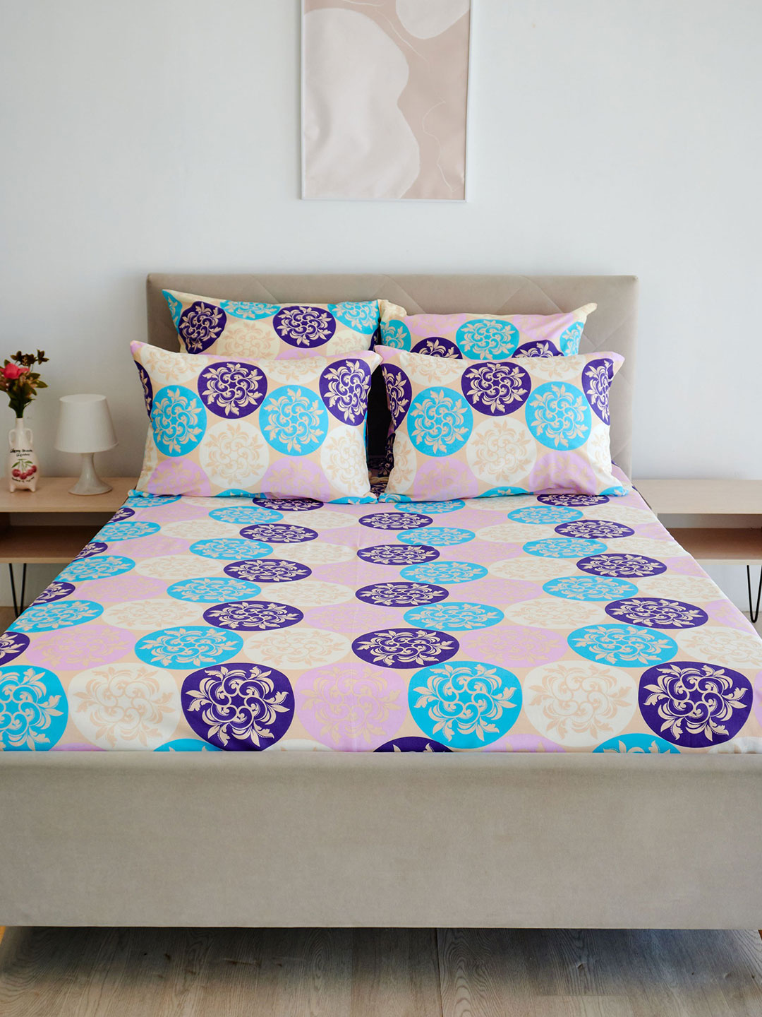 Простыня поплин - Медальоны, цвет сине-фиолетовый
