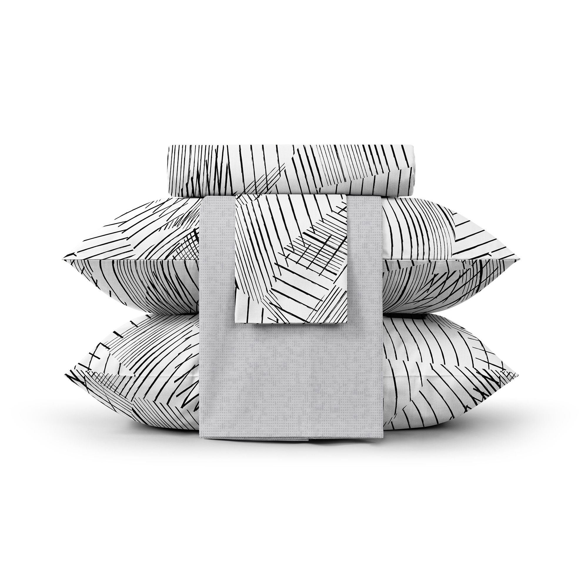 1 простыня 180/215см, 1 пододеяльник 148/215см на молнии, 2 наволочки 50/70см Lines