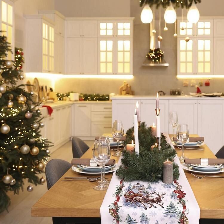 Дорожка столовая "В гостях у Деда Мороза" 45*150 см. хлопок 100%