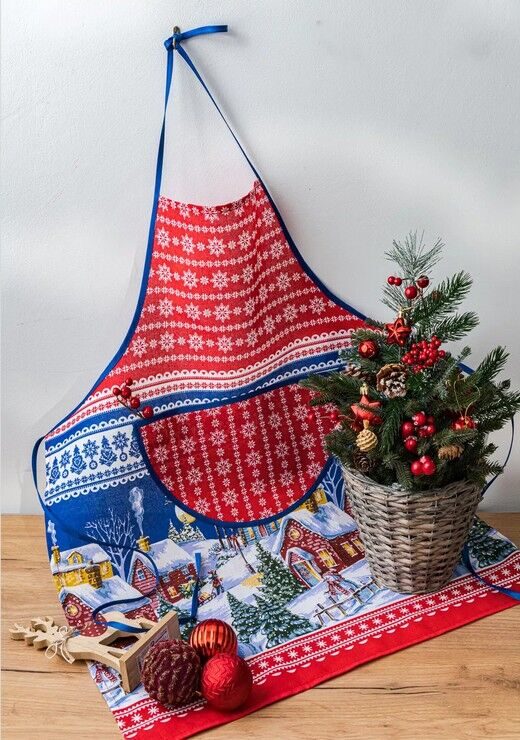 Фартук с карманом "Зимний вечер"-красн. рогожка хлопок 100%