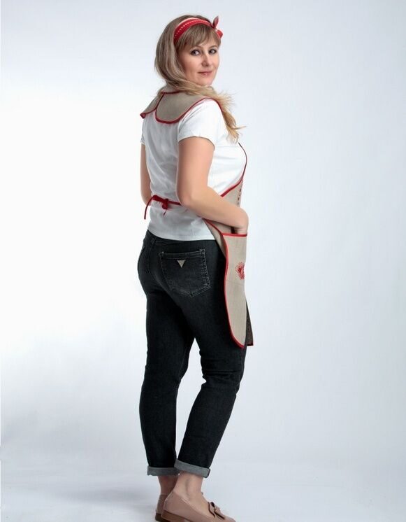 Льняной кухонный фартук-сувенир модель ЛП 14-10 с вышивкой. Лен 100%.