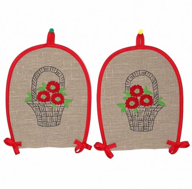 Комплект прихваток с вышивкой "Корзинка с цветами" лен 100%