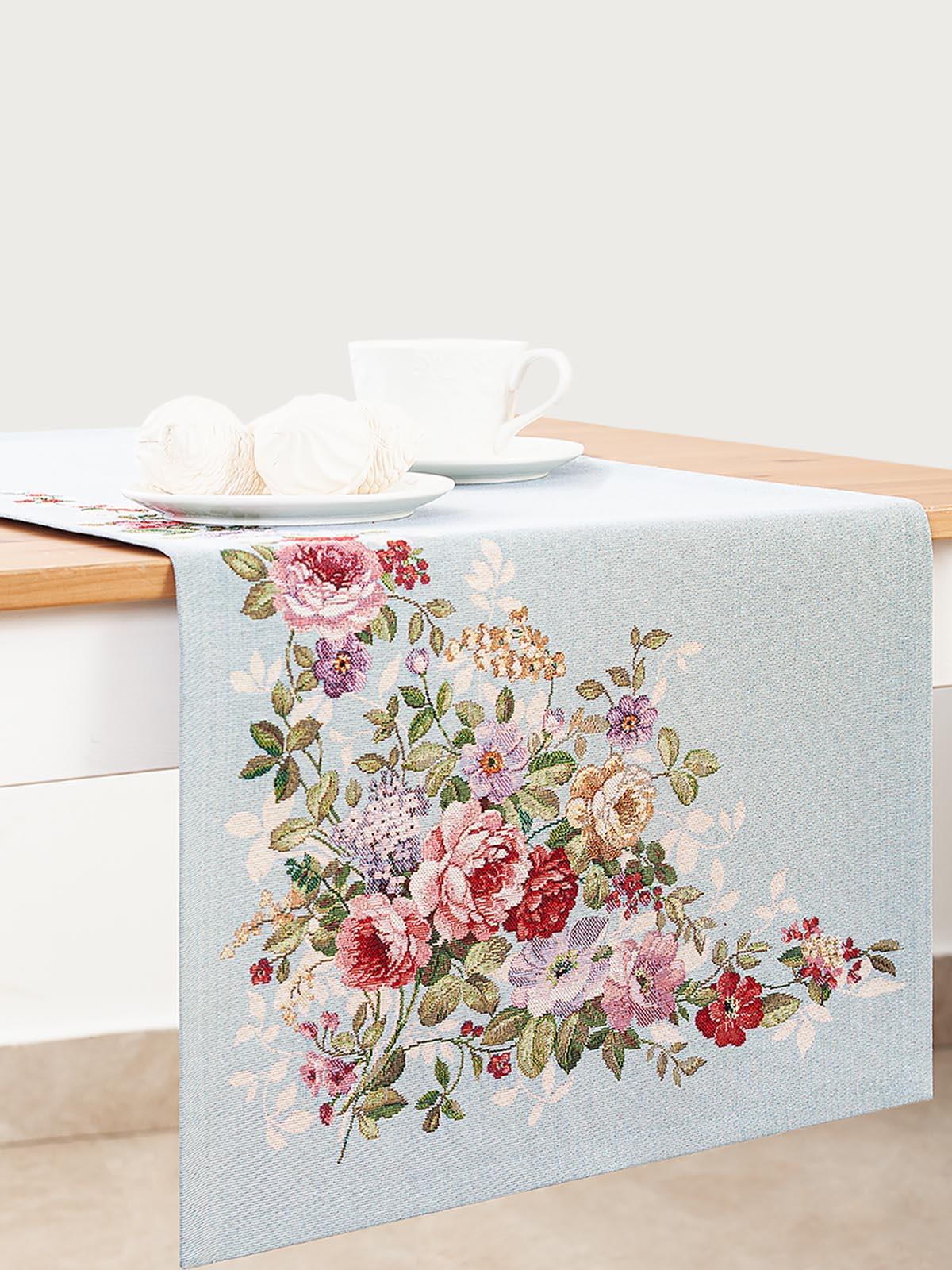 Принцесса цветов бирюзовый фон Салфетка 44х140 см 08825