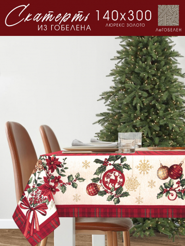 Рождественский венок клетка Скатерть золотой люрекс 140х300 см 2310662