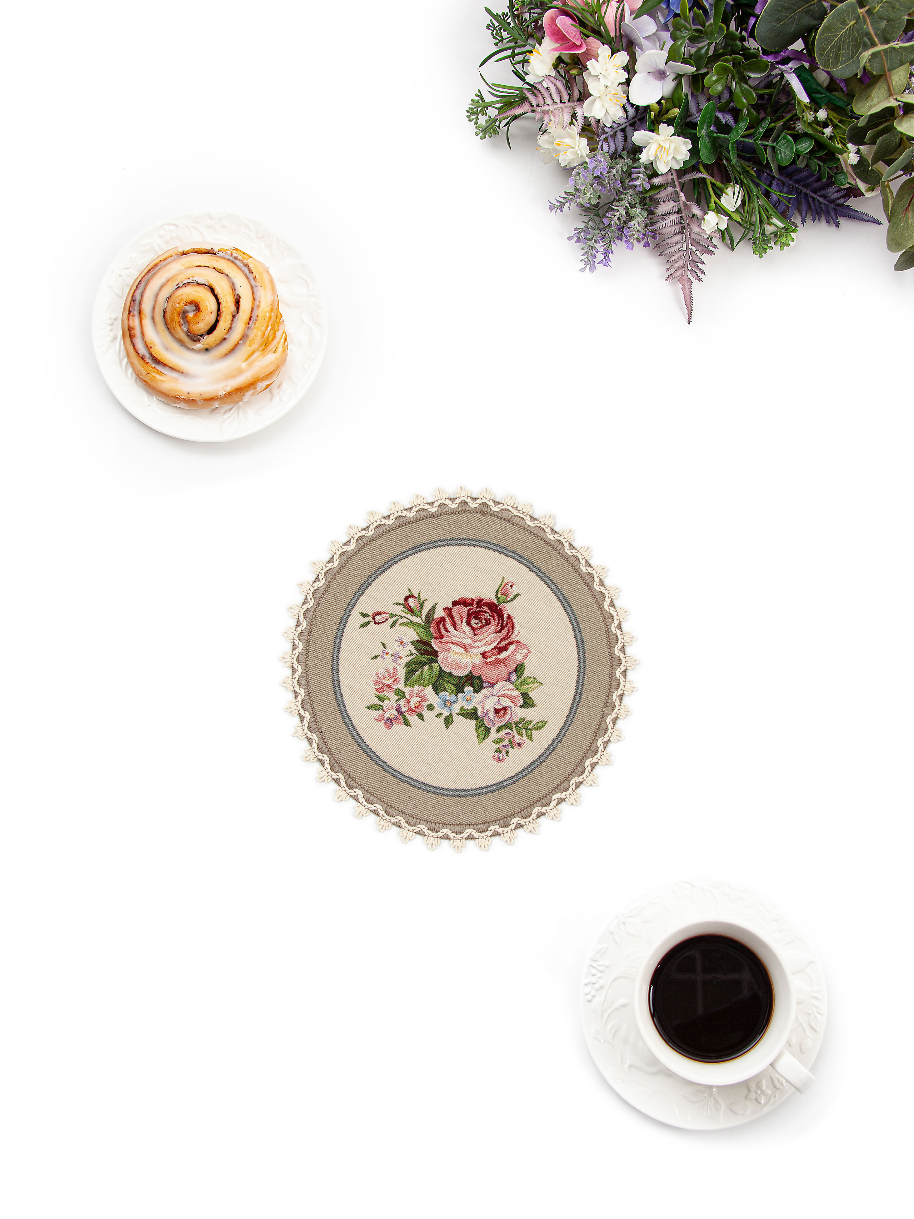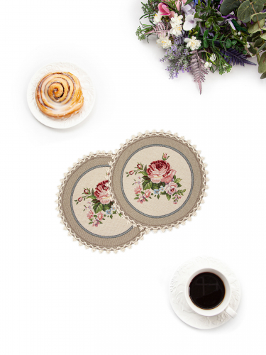 Розы Дамаск Сепия Комплект салфеток 2шт круг д27 см 2105764
