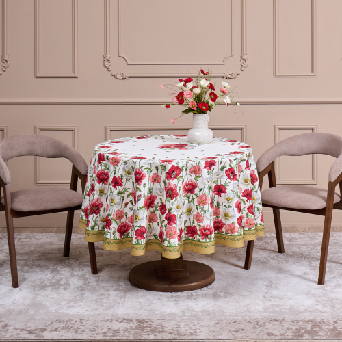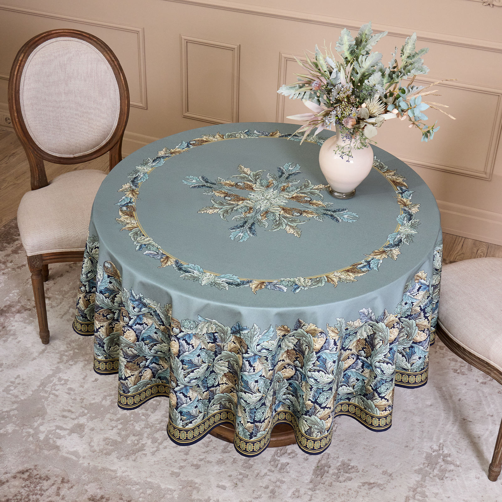 СКАТЕРТЬ КРУГЛАЯ "ЛИСТЬЯ МОРРИСА"190 СМ ,100% ХЛОПОК ,СИНИЙ, ТВИЛ, ПРОПИТКА