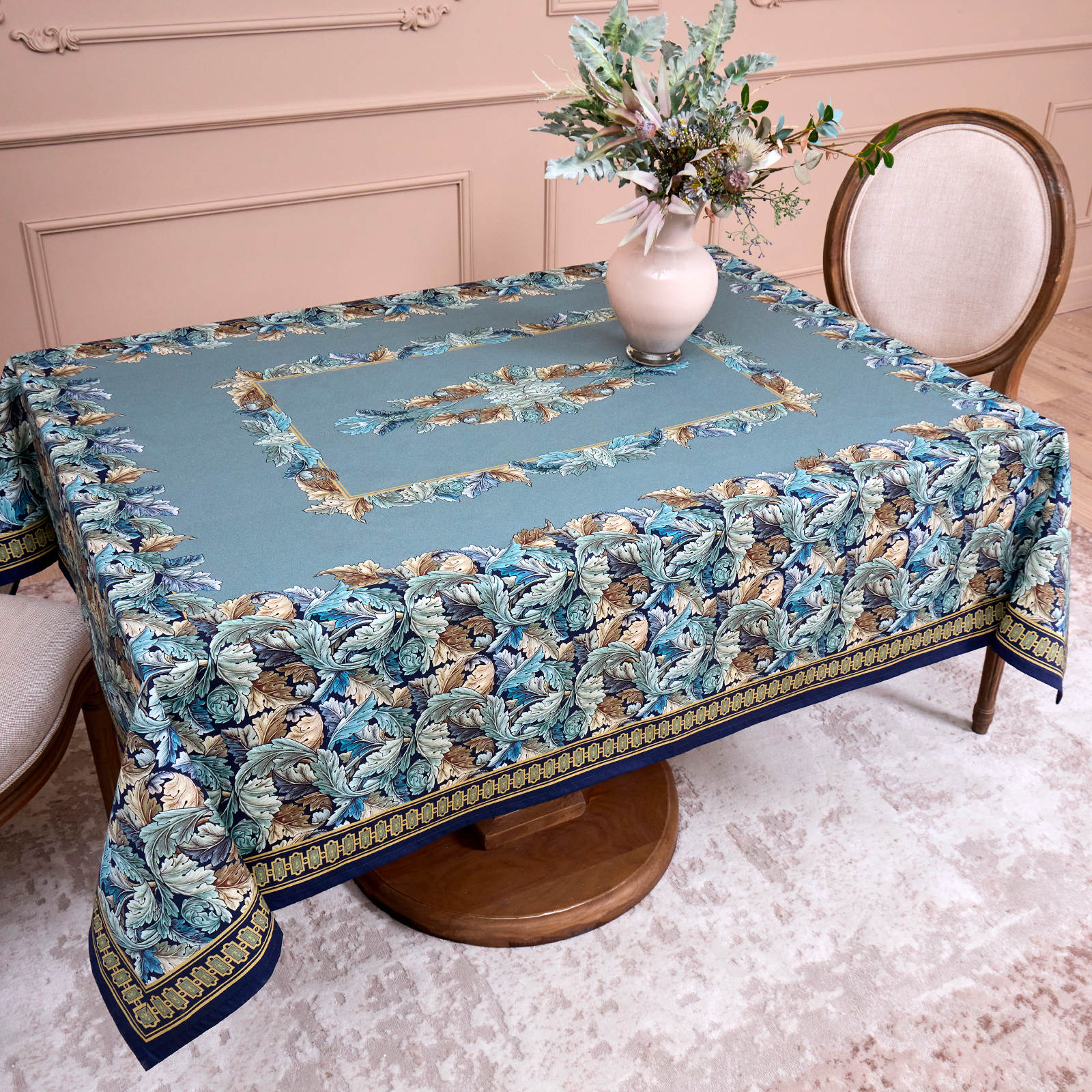 Особым направлением бренда «SANTALINO» , является изготовление столового белья ( скатерти , салфетки, дорожки (раннер), плейсметы, полотенца, фартуки) , по эксклюзивным дизайнам наших художников, воплощённых в цифровой печати, на современном оборудовании. Для пошива изделий используются только натуральные материалы 100% хлопок , плотность ткани составляет 190 гр\м2, она имеет приятную структуру в мелкий рубчик и называется твил, отличается хорошей капелярностью (впитываемость влаги), драпируемостью, износостойкостью, ткань проходит процесс каландрирования, что делает её более плотной и придаёт лёгкий атласный блеск, предотвращает образование так называемых «катышек» т.е уменьшается пилингуемость ткани. Цифровая печать позволяет перенести на изделия не только всё богатство красок и оттенков, но и придать особую прочность крашению, ткань не теряет своей яркости даже после 100 стирок. Изделия легки и не прихотливы в уходе, стирать нужно при температуре 40С , гладить при темпенратуре от 110-170С с отпариванием, но нельзя подвергать хлорному отбеливанию .Для удобства эксплуотации на ряд изделий, такие как фартуки , скатерти, дорожки, может наноситься водогрязеотталкивающая пропитка которая не влияет на внешний вид изделия, но позволяет избежать сильного загрязнения при использовании.