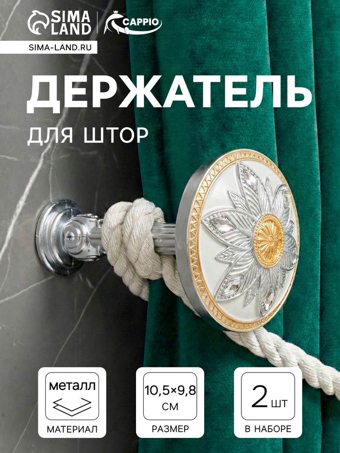 Держатели для штор KS032 серебристые с золотом, 2 шт. — решение для настенного крепления занавесок любого типа. Диаметр составляет 98 мм.