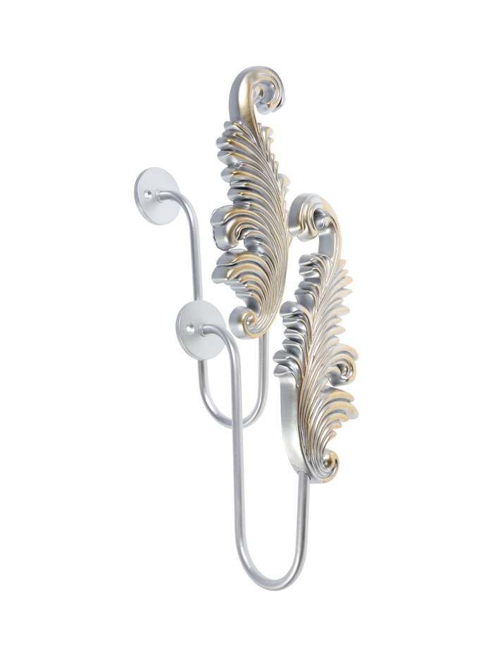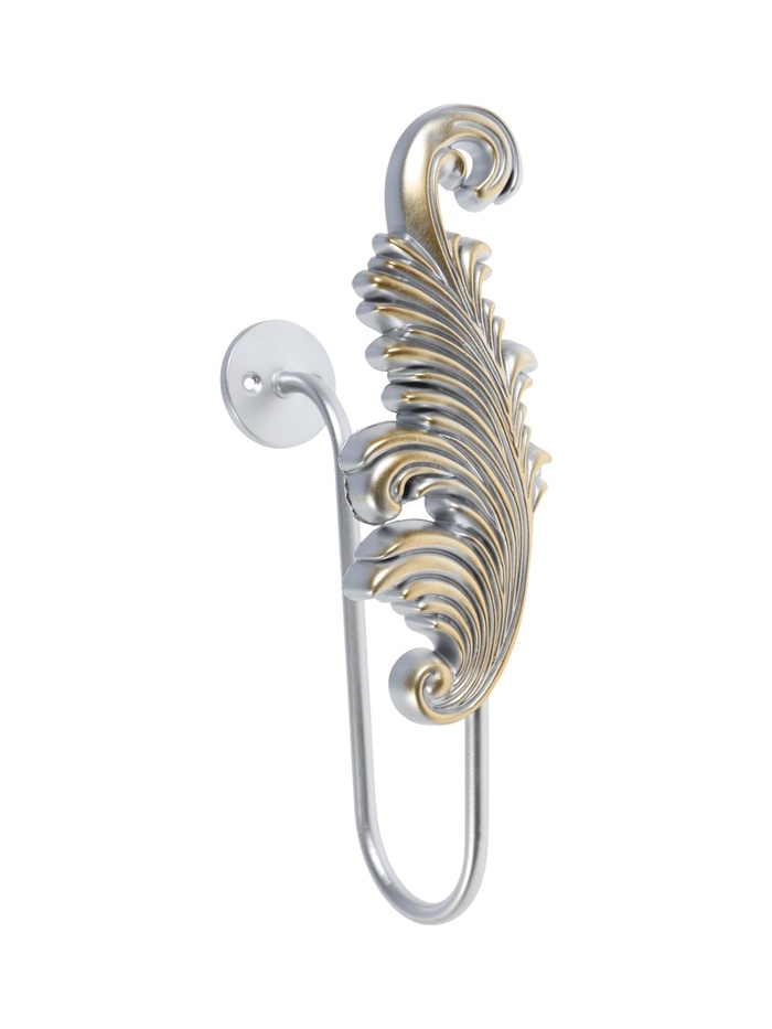 Держатель для штор CAPPIO KS042, серебро с золотом, набор 2 шт. — это настенный кронштейн для крепления карниза. Металлическая конструкция с одним рожком фиксирует штангу с шторами.