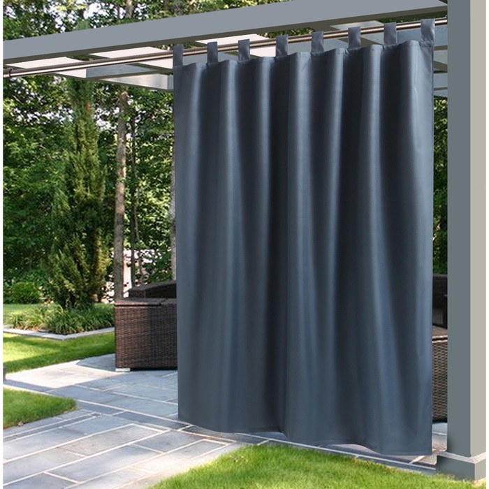 Портьера для террасы Этель 145×200 см на липучках, цвет графит, оксфорд с ВМГО, 100% п/э