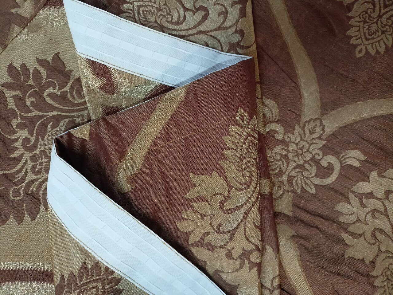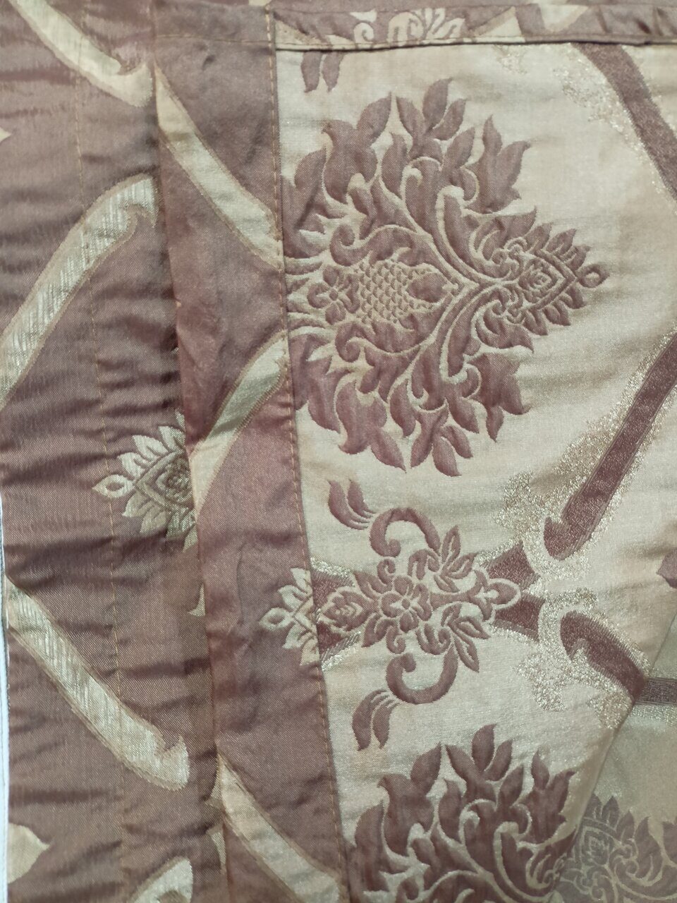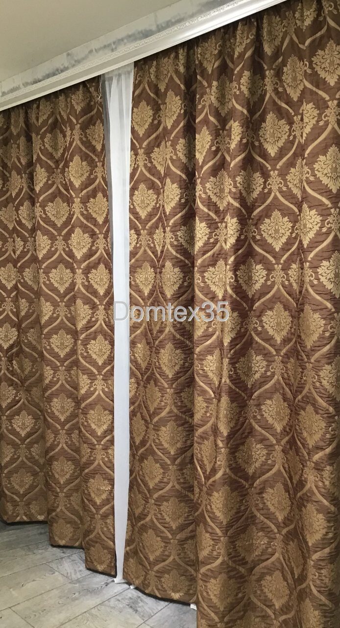 Комплект из плотной жаккардовой ткани - жатки коричневого цвета с жаккардовым узором, основа с небольшим блеском.